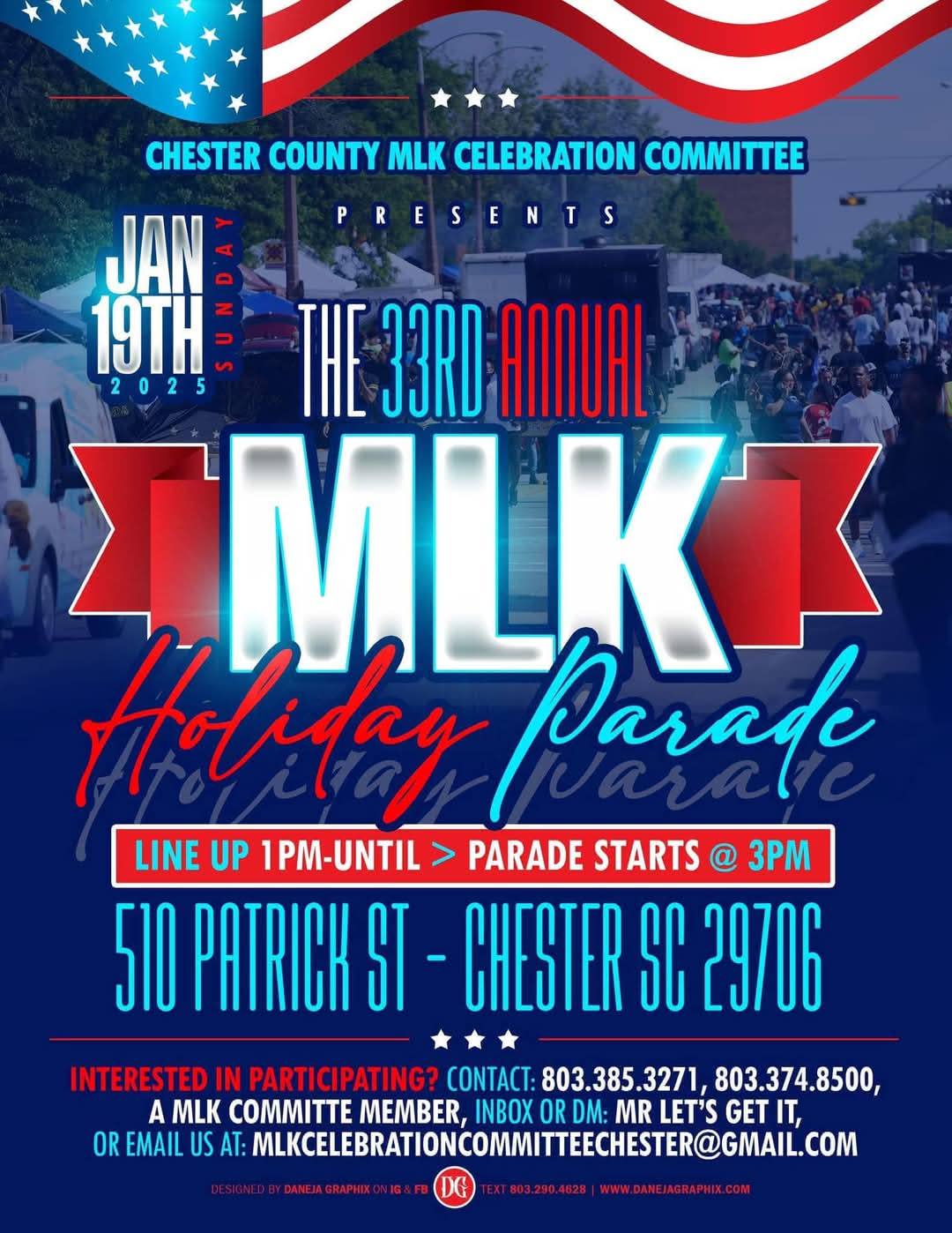 The 33rd Annual MLK Celebration Parade will be held Sunday, January 19th @ 3:00 pm. Line up will start at 1:30 pm.