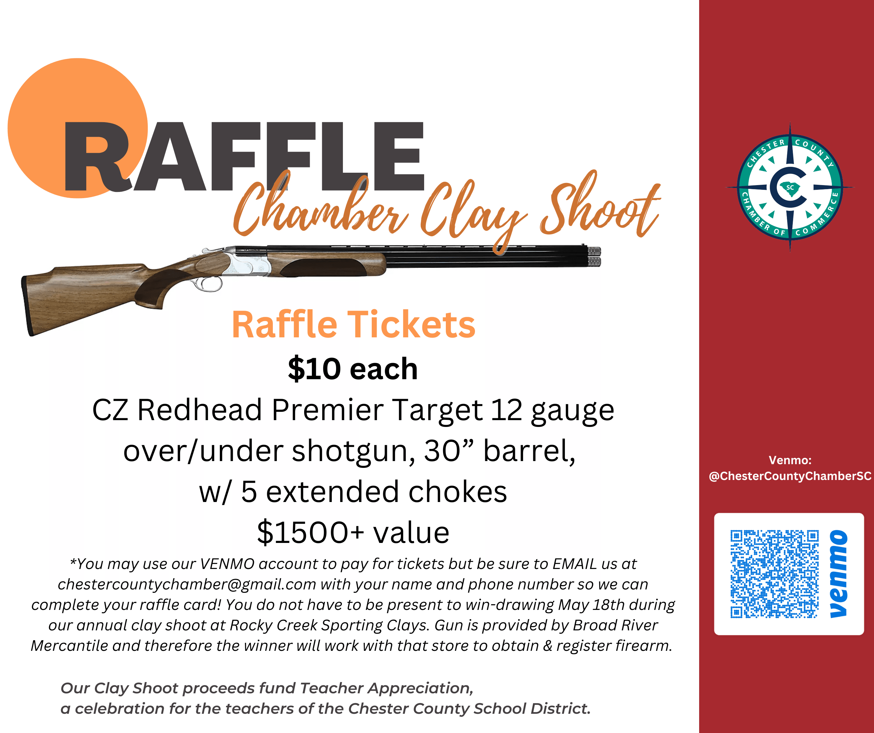 * Our Clay Shoot proceeds fund Teacher Appreciation, a celebration for the teachers of the Chester County School District.