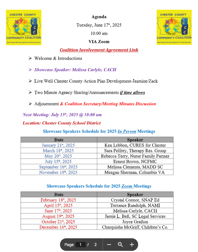Chester County Community Coalition Meeting