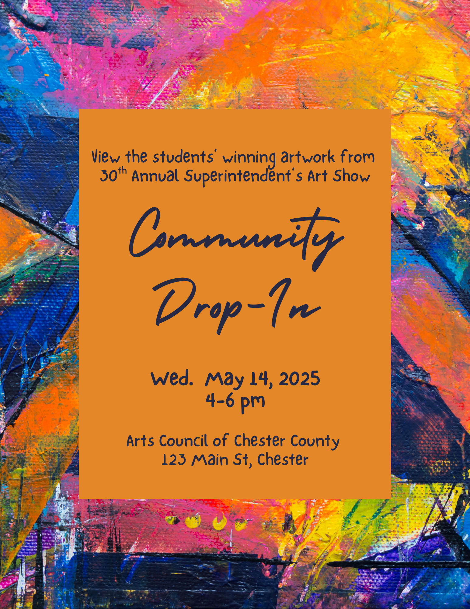 May 14: Join us for a special Community Drop-In from 4-6 pm at the Arts Council's Ann D. Marion Gallery. We invite the community to view the winning artwork created by Chester County students.