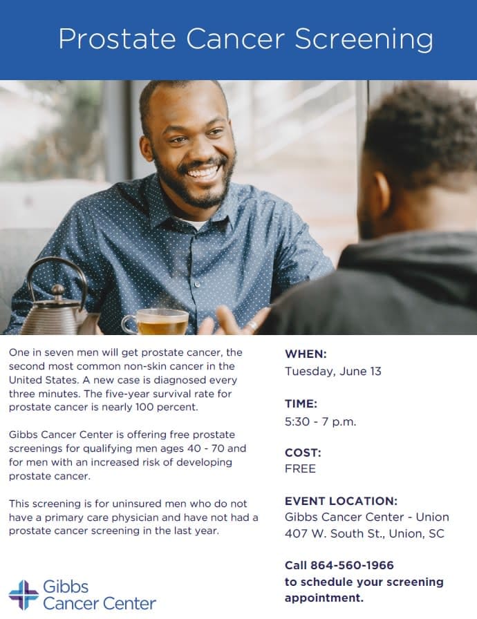 Free Prostate Cancer Screening for qualifying men ages 40-70.Images