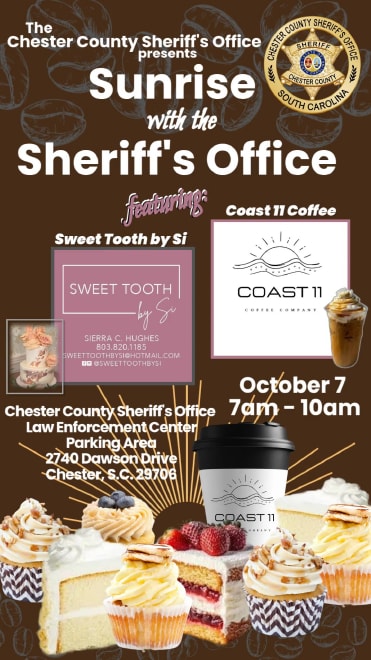 Stop by to grab your favorite morning coffee from Coast 11 Coffee and a sweet treat from Sweet Tooth by Si, and take a moment to connect with members of the Chester County Sheriff’s Office. Deputies and staff will be stopping in throughout the morning, and this is a great chance to say hello, enjoy some casual conversation, and ask questions of our team in a relaxed, welcoming setting.