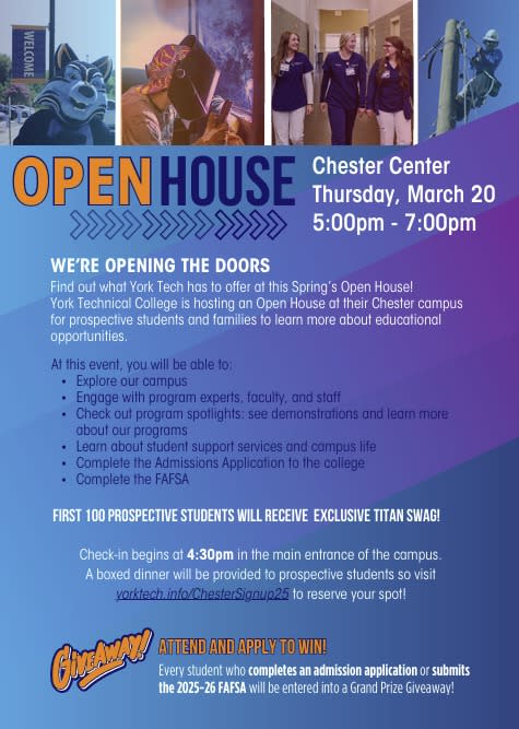 Find out what York Tech has to offer at this Spring's Open House - Chester campus!Images